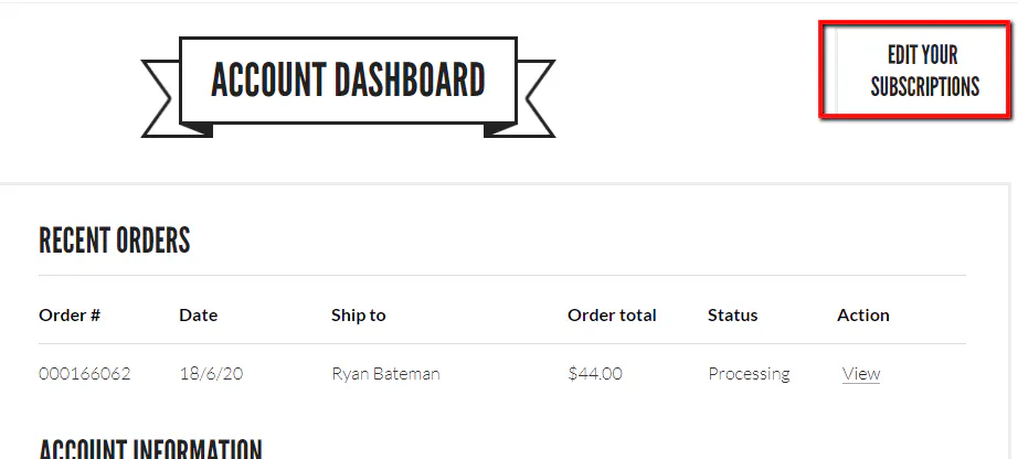 Go to your account dashboard and click on Edit Your Subscription button on the top right side of the page.