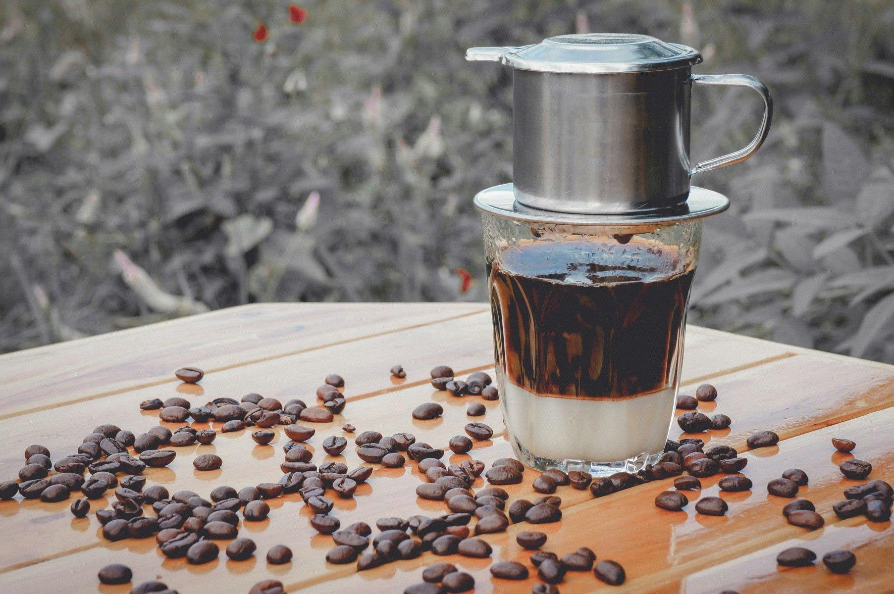 A mixture of sweet and strong, the traditional Vietnamese iced coffee at its simplest is made using medium to coarse ground dark roast Vietnamese-grown coffee that is brewed straight into a cup of condensed milk and ice through a French drip filter.