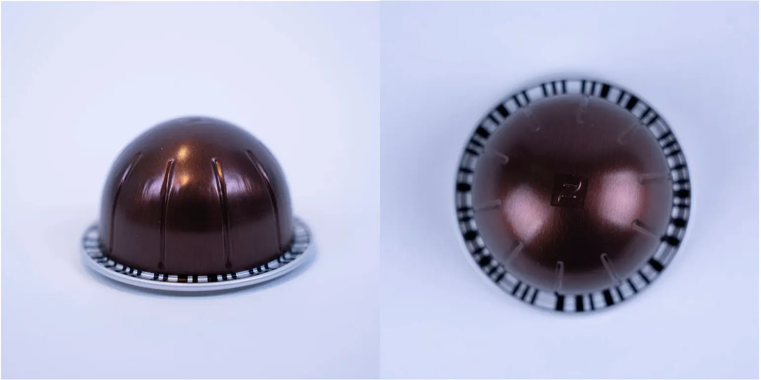 This proprietary design includes a barcode on the pod’s rim. The Vertuo machine reads this barcode, calibrating the temperature and extraction to suit the type of pod. These barcodes are also difficult to reproduce.