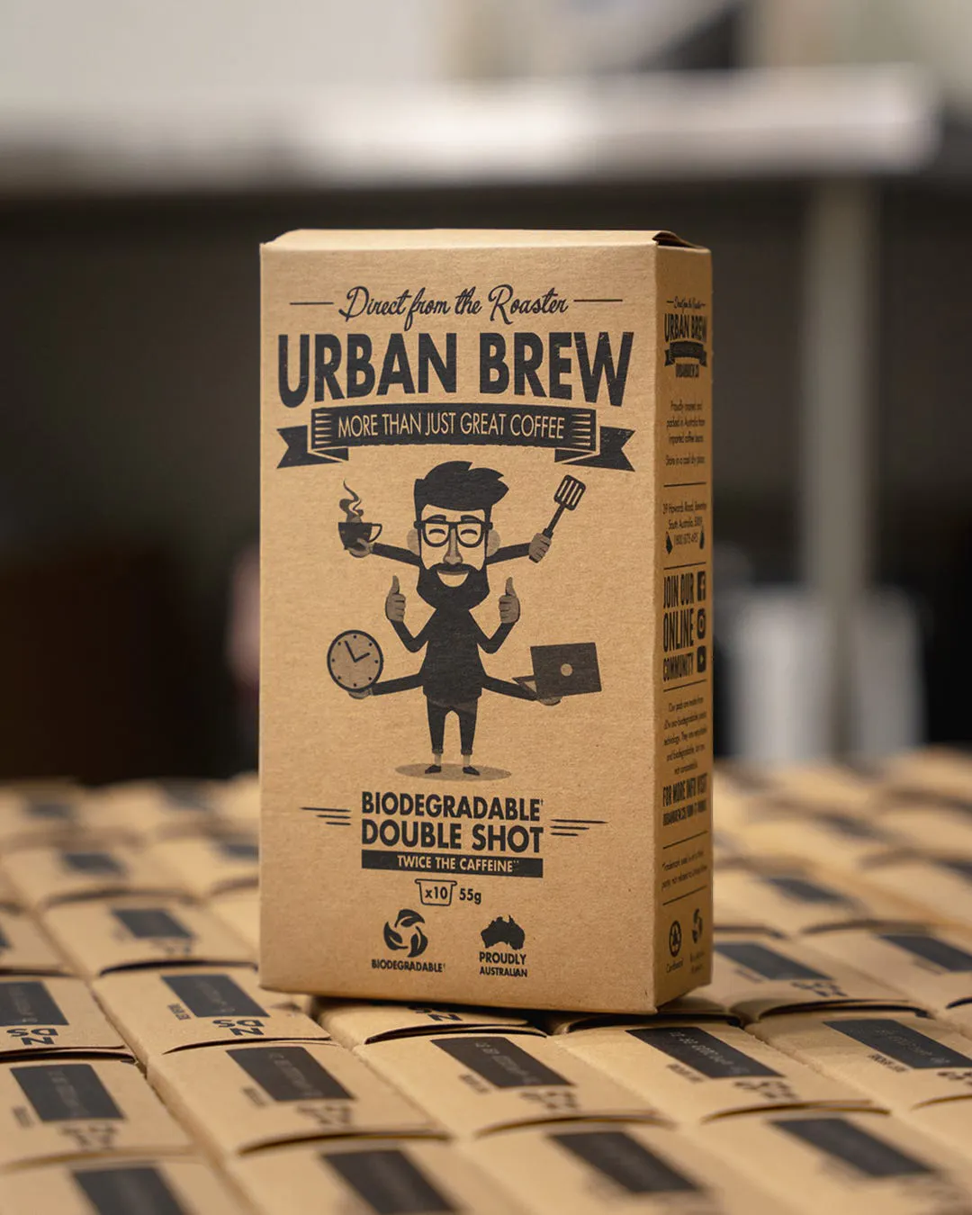 Enter the Urban Brew Double Shot pod: Two full espresso shots + a serious hit of pure Brazilian guarana, all inside one compostable capsule that still plays nice with your regular Nespresso® Original machine.